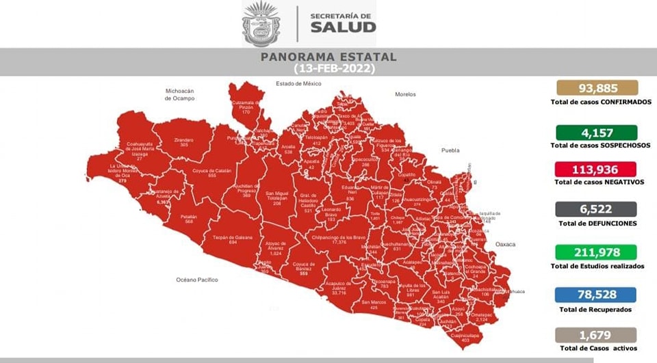 acumulan en Guerrero 93,980 casos confirmados y 6,524 defunciones, y que al